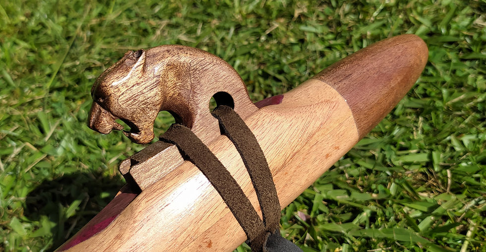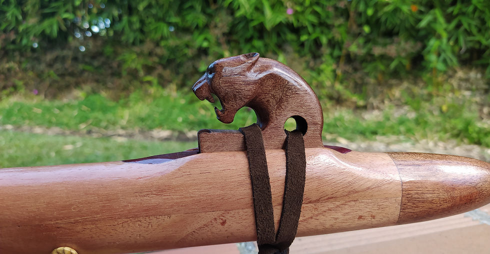 Esta flauta tiene apliques decorativos de Nazareno en orificio de sonido y de Abarco en la boquilla.